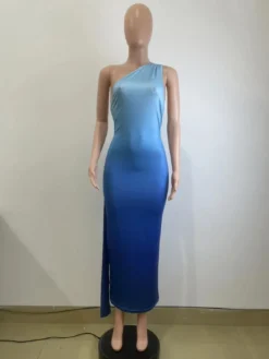 | Product Name | Women’s Summer Sleeveless Slash Shoulder Gradient Color Sexy Slim Long Dress |