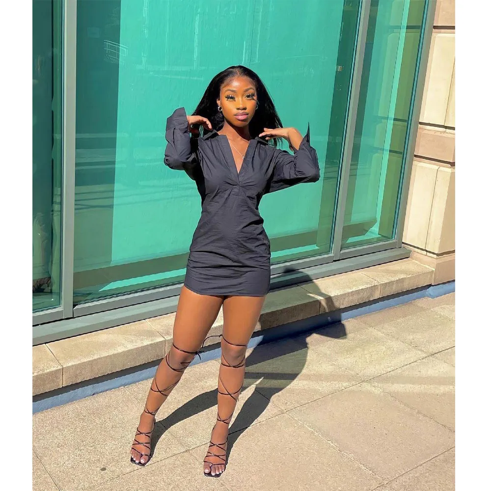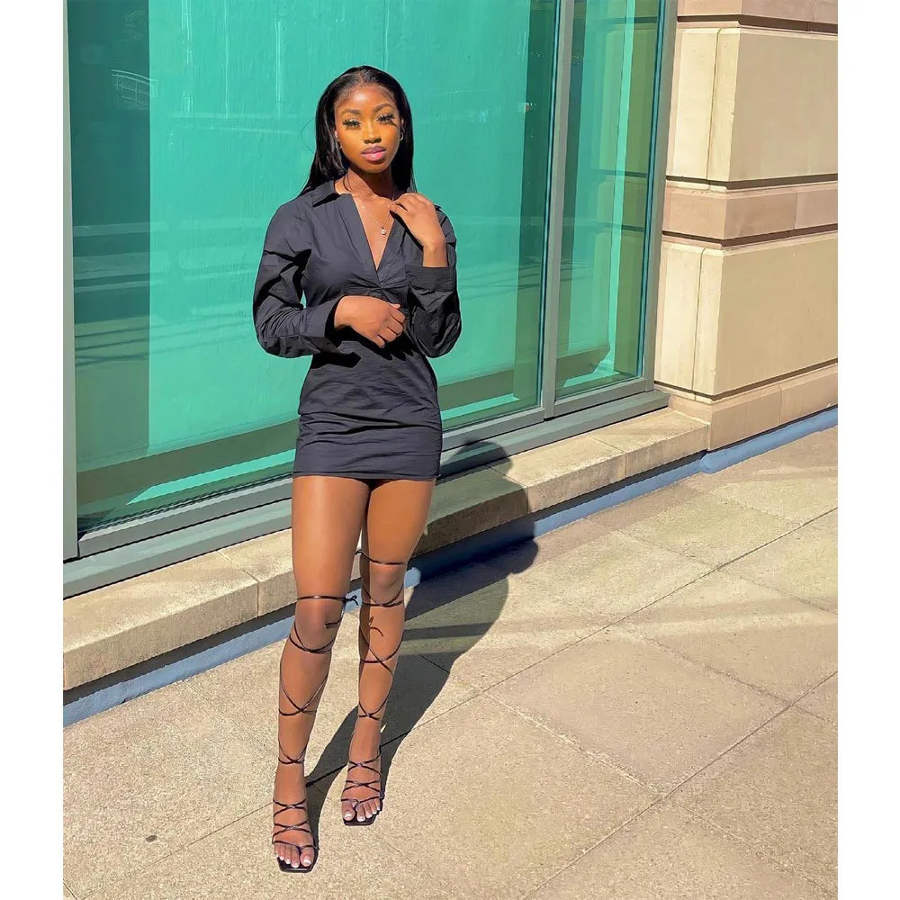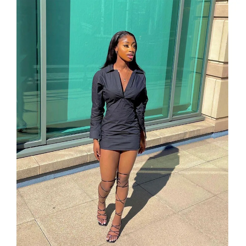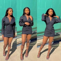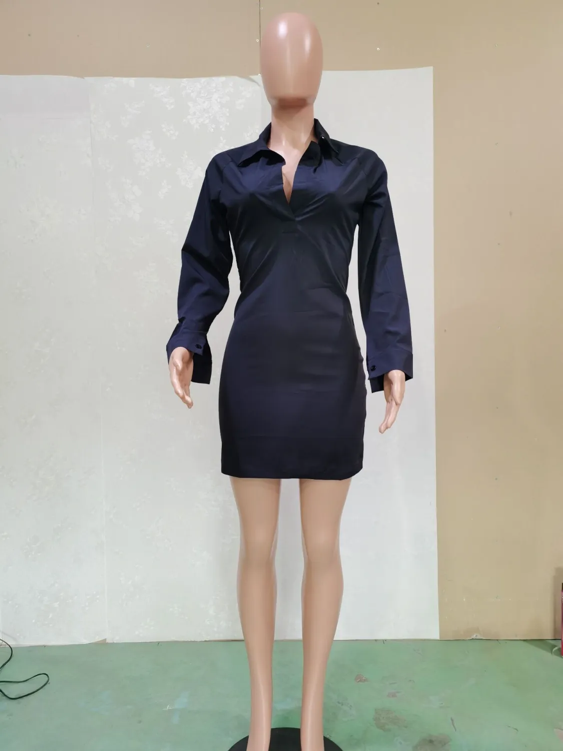 | Product Name | Women Solid Color Long Sleeve Min Shirt Dress |