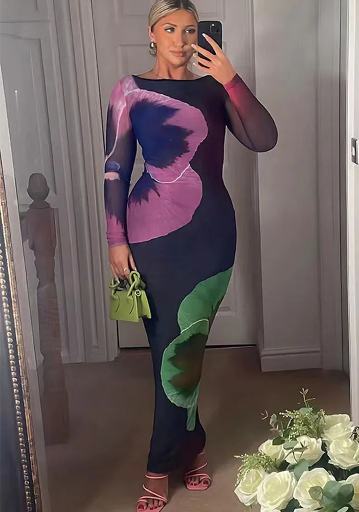 | Product Name | Women Spring Sexy Print Round Neck Bodycon Dress |