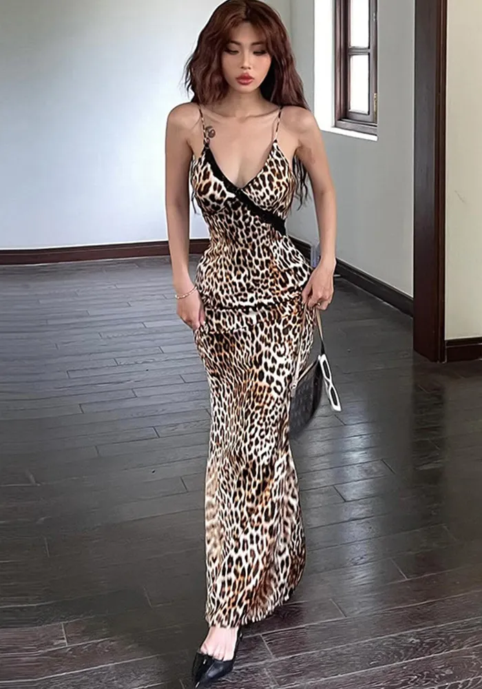 | Product Name | Women summer sexy v-neck leopard print Backless Strap Dress |