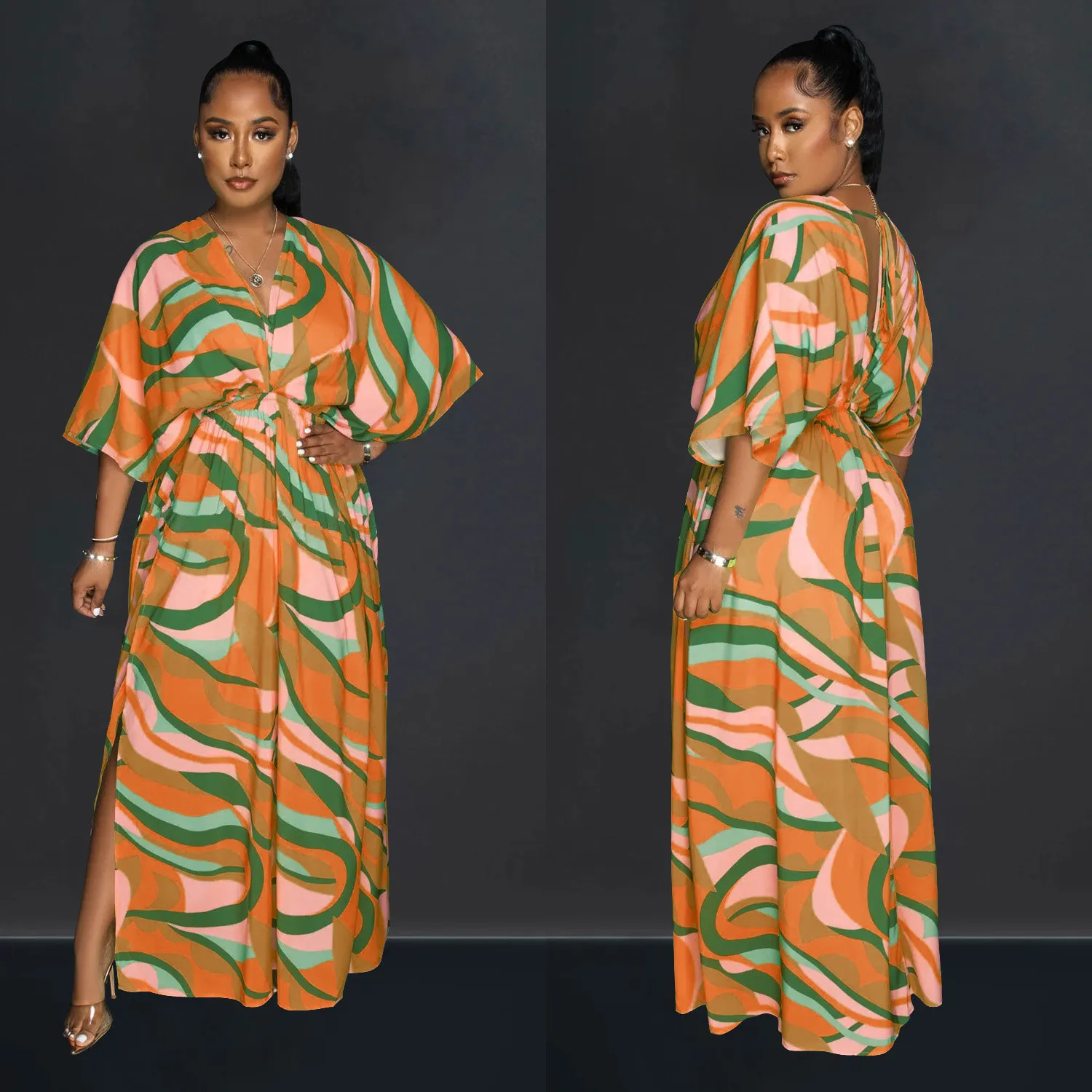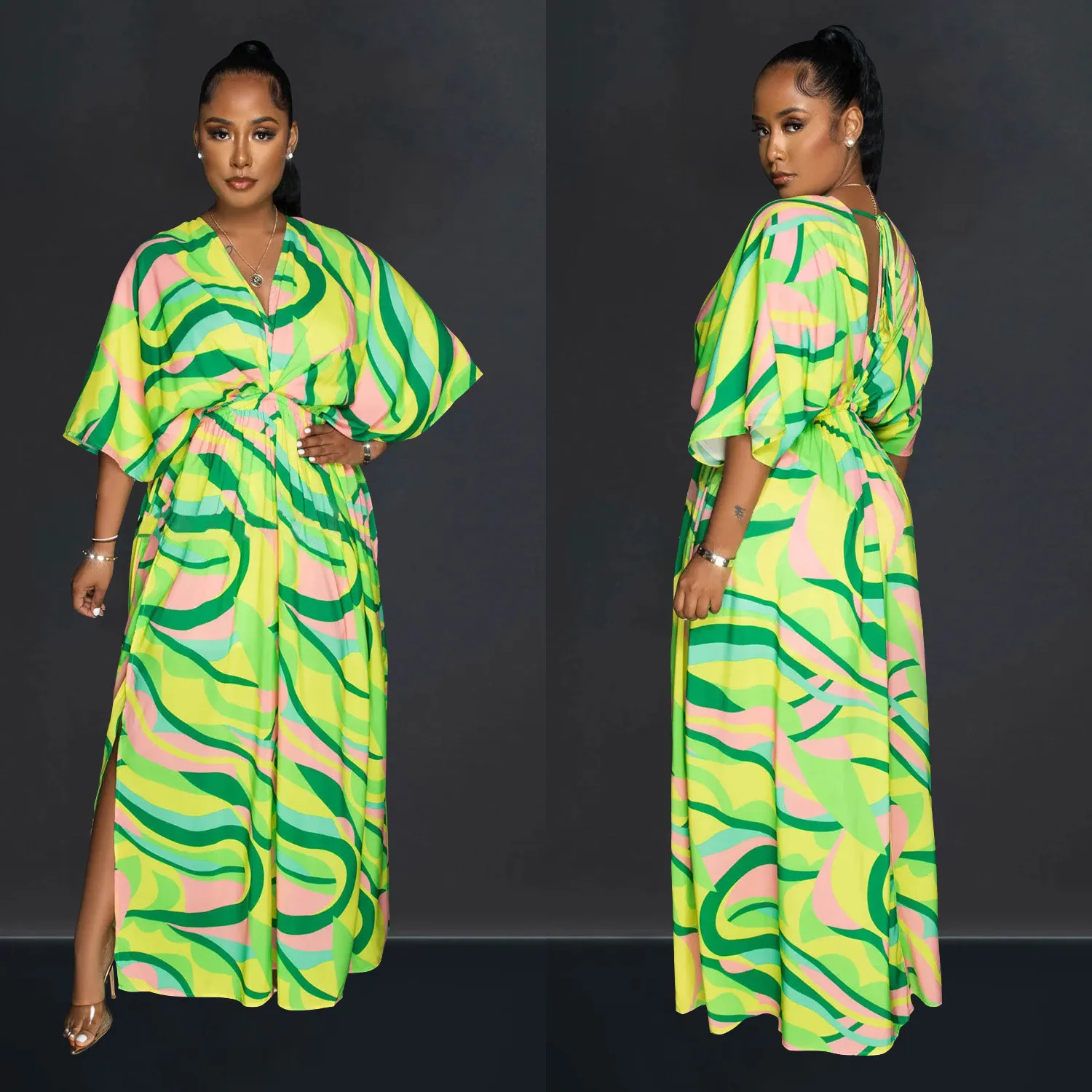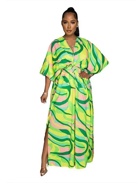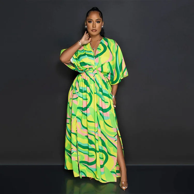 This Womens Green Multicolor Vintage Print Double Slit Maxi Dress Design Made Of High Quality Polyster And Spandex Material, Which Is Stretchy, Soft And Comfortable. The Is Always On Trend. This Casual Maxi Dresses Is a Must-Have For Vocations And Dating Occasions. Maxi Dresses At Global Lover Comes With Huge Selections Of Colors, Sizes, Material, And Designs. When You Need Wholesale Cheap Maxi Dresses, You Can Always Find Vary Collection And No Moq On Our Wholesale Women Fashion Online Store.